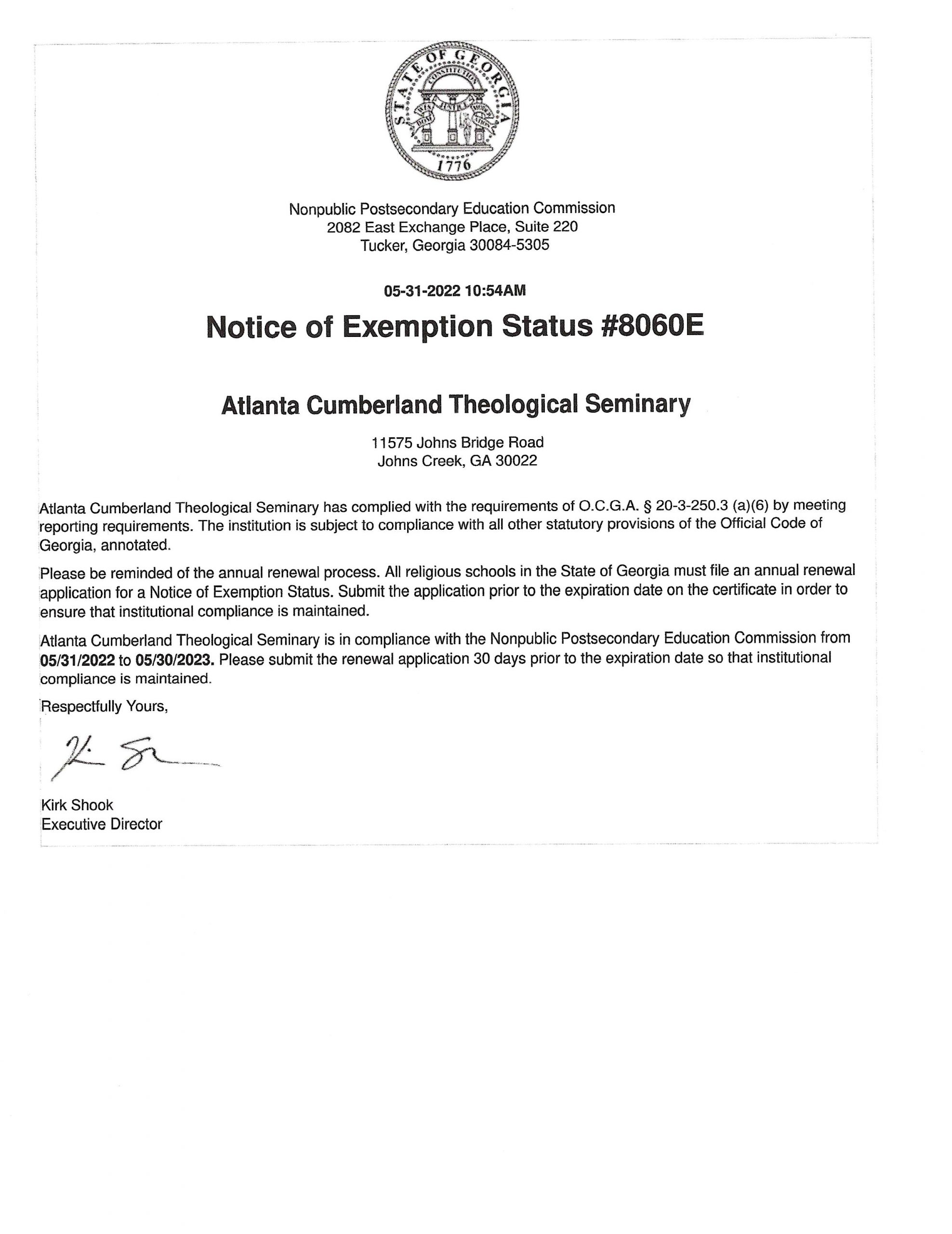 저희는 조지아 주정부에 비영리 단체로 등록된 신학교입니다